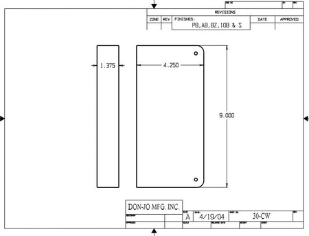 DON-JO 30 CW Wrap Around 4-1/4" x 9", 1-3/8" Door Size