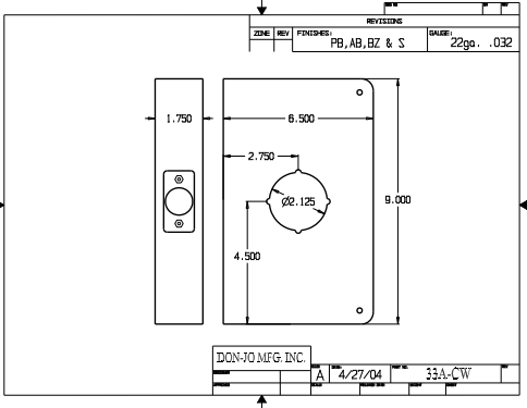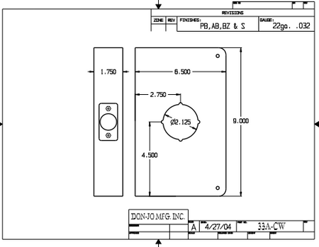 DON-JO 33A CW Wrap Around 6-1/2" x 9", 2-3/4" Backset, 1-3/4" Door Size