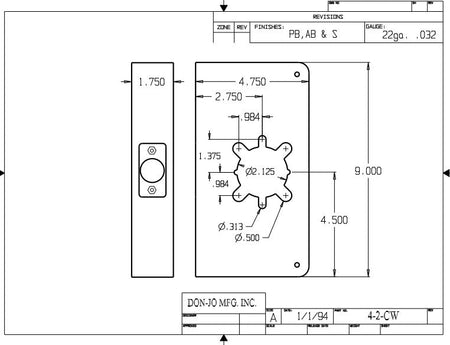 DON-JO 4 2 CW Wrap Around For 1-3/4" Door Size, 2-3/4" Backset