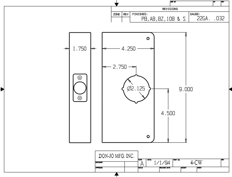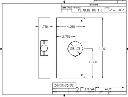 DON-JO 4 CW Wrap Around For 1-3/4" Door Size, 2-3/4" Backset