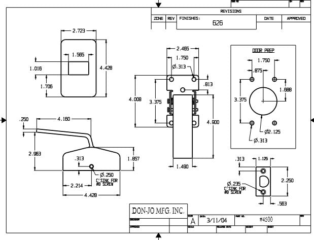 DON-JO 4500 Hospital Latch, 630 - Satin Stainless Finish, Brass Material