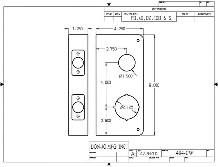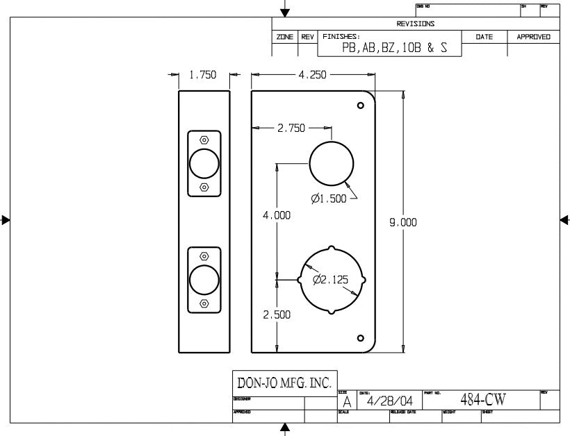 DON-JO 484 CW Wrap Around 4 1/4" x 9", 2 3/4" Backset, 1 3/4" Door Size
