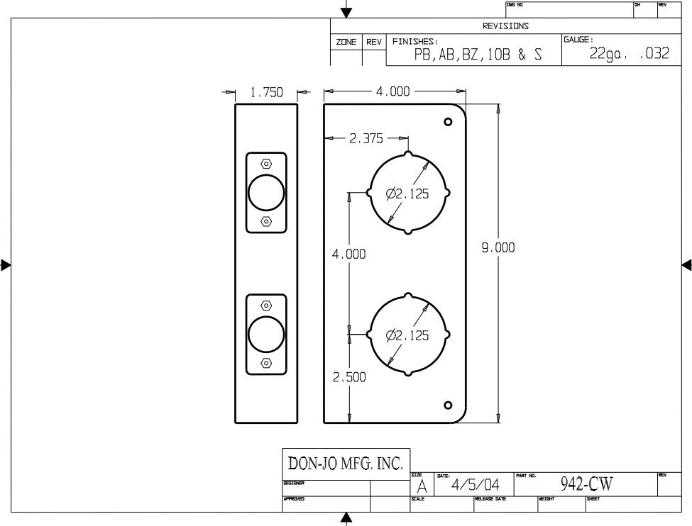 DON-JO 942 CW Wrap Around 4" x 9", 2-3/8" Backset, 1-3/4" Door Size