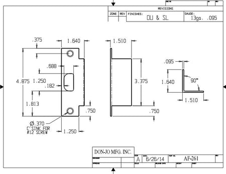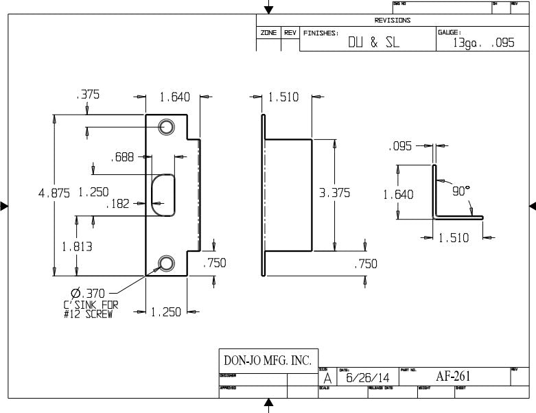 Don-jo AF 261 Electric Strike Filler Plate