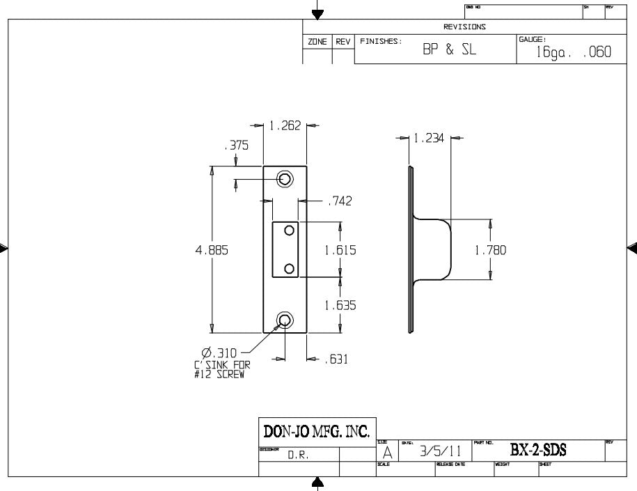 DON-JO BX 2 SDS Security Strike, 4 7/8" x 1 1/4"