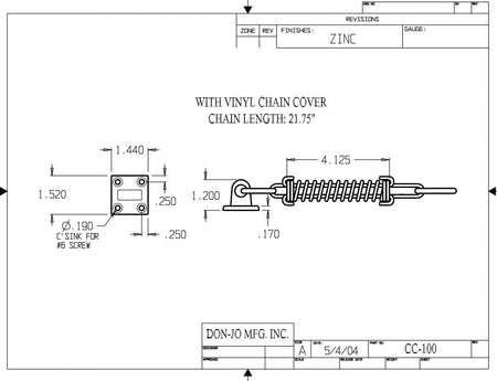 DON-JO CC 100 Crash Chain, 21-3/4" Length, Vinyl Cover, Zinc Finish