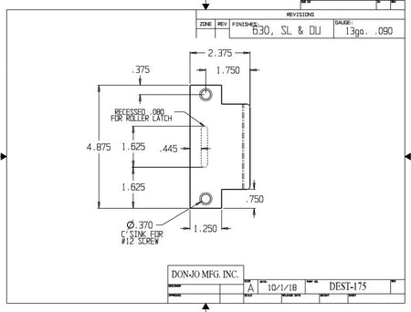 DON-JO DEST 175 Extended Lip Dimple Strike, 4 7/8" x 1 3/4"