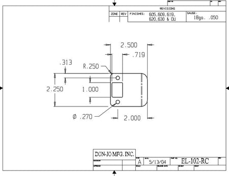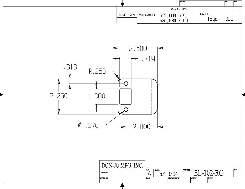 DON-JO EL 102 RC Extended Lip Strike, 2 1/4" x 2", Radius Corner