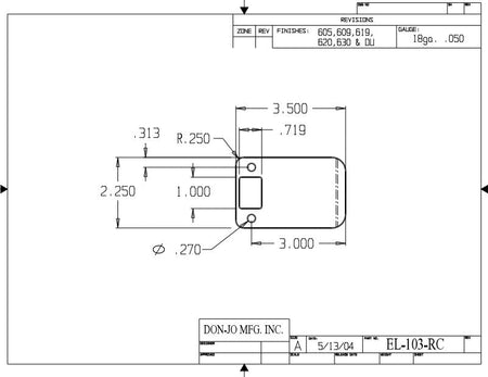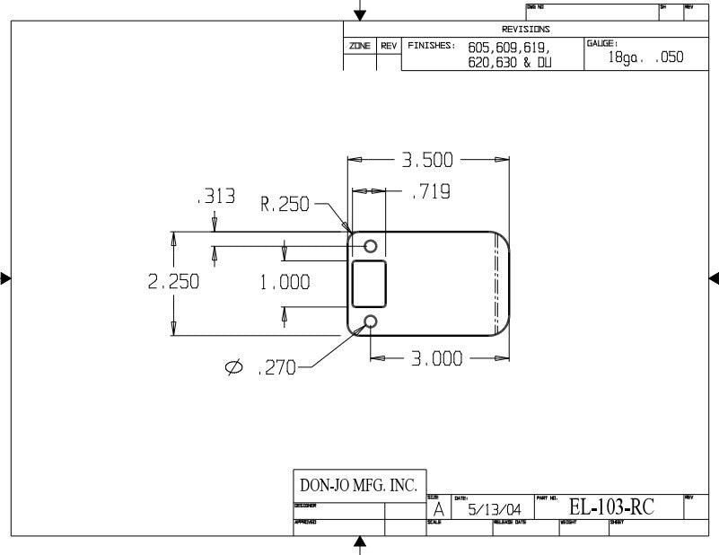 DON-JO EL 103 RC Extended Lip Strike, 2 1/4" x 3", Radius Corner