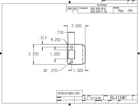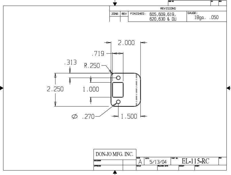 DON-JO EL 115 RC Extended Lip Strike, 2 1/4" x 1 1/2", Radius Corner