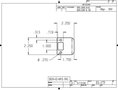 - Finishes: DU, 605, 609, 620, 619, 622, 629, 630