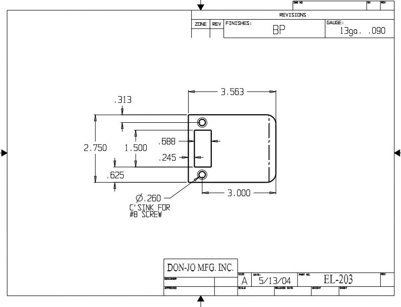 DON-JO EL 203 Extended Lip Strike, 2 3/4" x 3", Ferrous Material