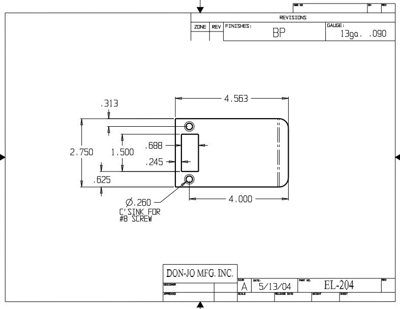 DON-JO EL 204 Extended Lip Strike, 2-3/4" x 4", Ferrous Material