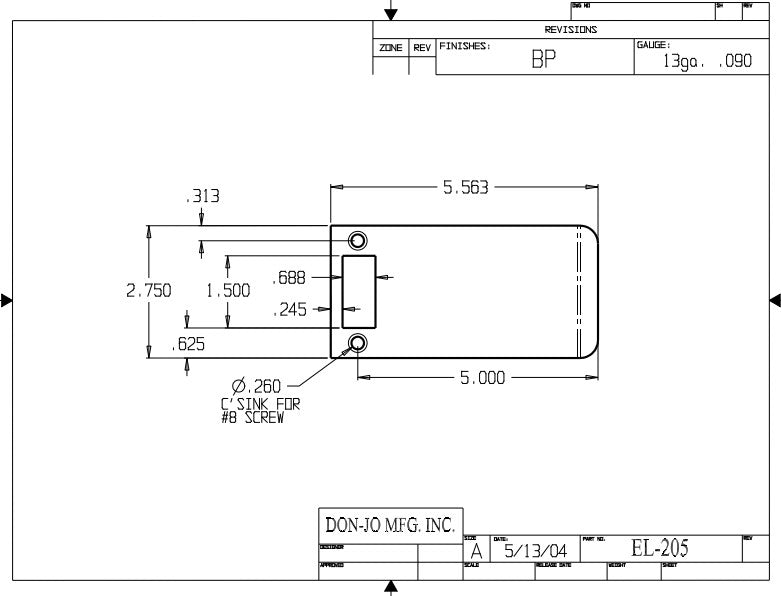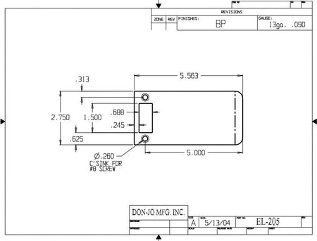 DON-JO EL 205 Extended Lip Strike, 2 3/4" x 5", Ferrous Material