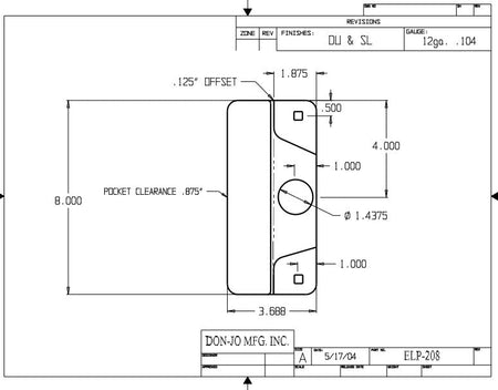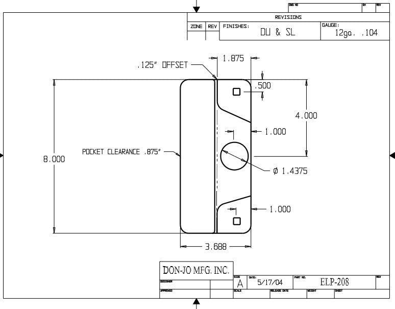 DON-JO ELP Latch Protector 208 EBF For Use With Electric Strikes, 3 1/2" x 8", Steel Material