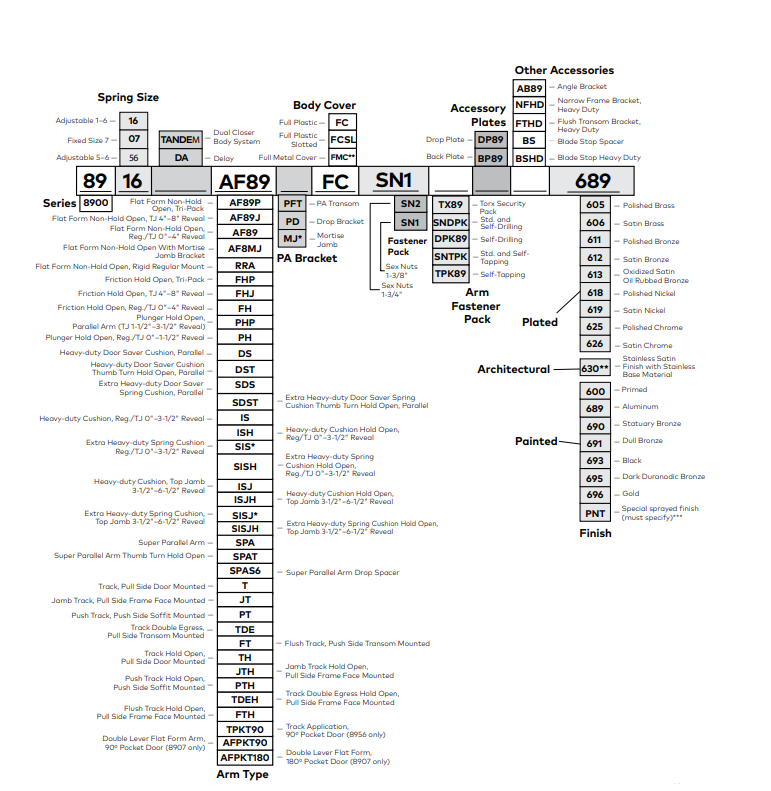 Long term performanceThe 8900 Series heavy-duty, 10 million cycle closers represent the latest in door control technology, combining over a quarter century of proven performance with its hydraulic control system and modern architecturally styled aesthetics. It results in the perfect combination of durability, reliability, and appearance.