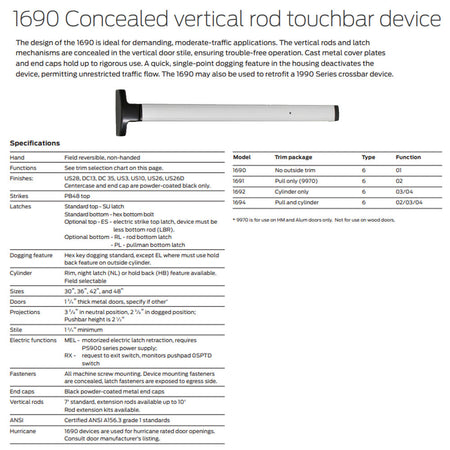 With its rugged cast metal cover plates, black powder-coated end caps, and Grade 1 ANSI certification, the 1690 Series is engineered to handle daily wear in schools, offices, hospitals, and public buildings. It offers flexible electric function support and is a direct retrofit for the Falcon 1990 crossbar series—making upgrades fast and hassle-free.