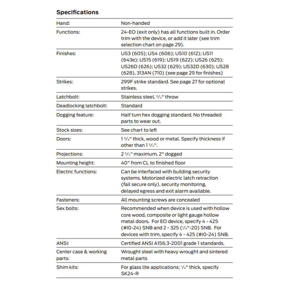 Engineered for durability and flexibility, the 24/25 Series Exit Devices are ideal for high-traffic environments including offices, churches, retail, hospitality, education, and healthcare facilities. These versatile devices are designed for both interior and exterior use, supporting new construction and retrofit applications.