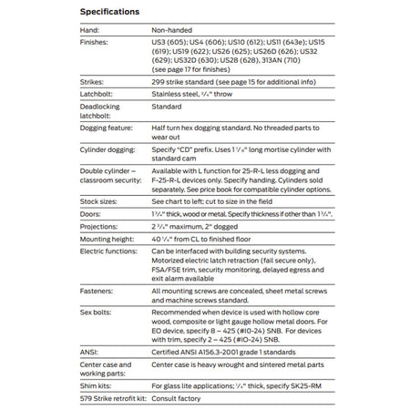 Available in Rim, Surface Vertical (SV), Concealed Vertical (CV), and Mortise (M) configurations