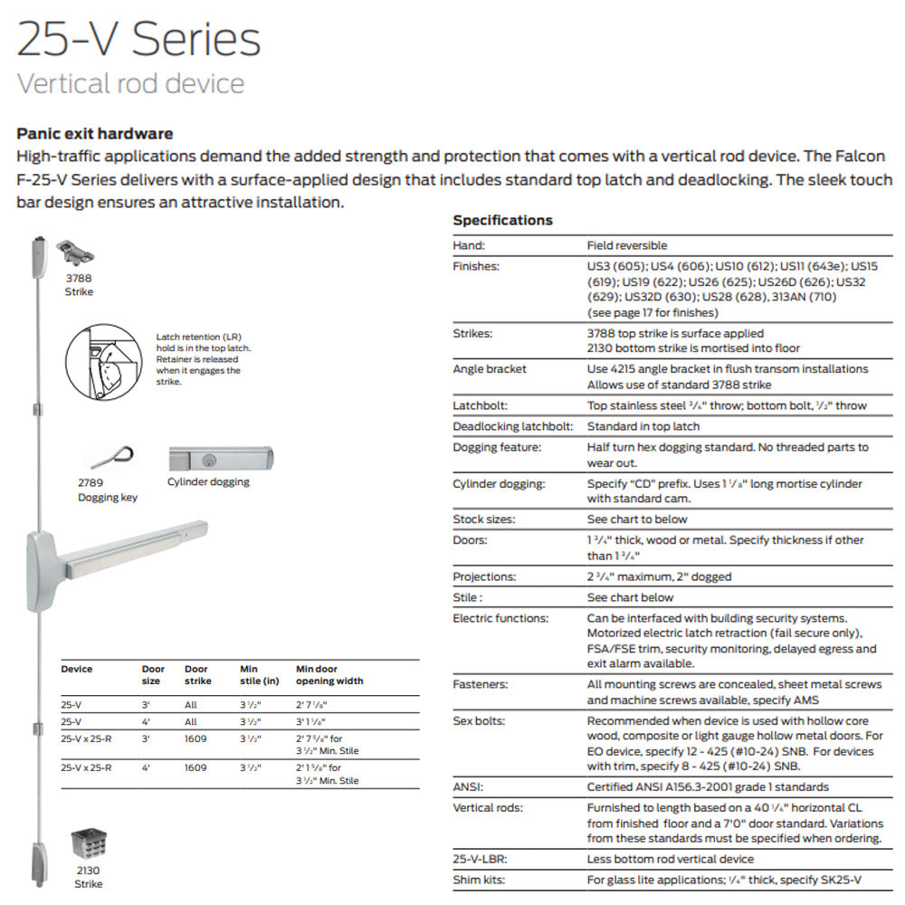 Falcon 25-V-EO Series Exit Only - Vertical Rod Exit Device