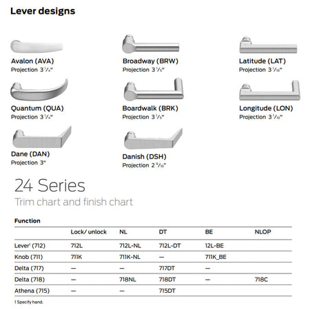 Ideal for commercial applications requiring security, style, and ease of maintenance, Falcon Exit Device Trims offer a perfect blend of function and form. Specify your preferred trim function, finish, and lever design to create a tailored hardware solution that meets your project's exact needs.