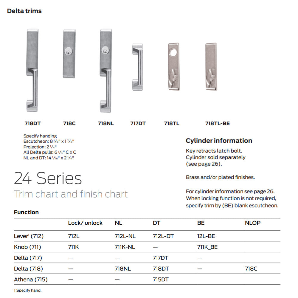 Falcon 717DT-C - Dummy Pull Trim Delta Trim Design for 24 Series Concealed Vertical Rod - Field Reversible