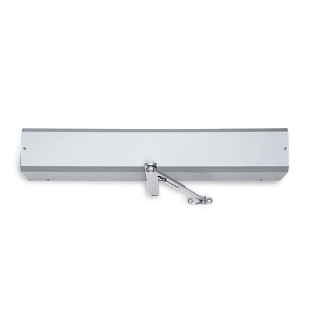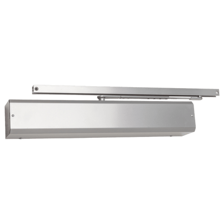 - Regular arm: mounts on the push side of the door and is stamped with an adjustable forearm to accommodate the door opening