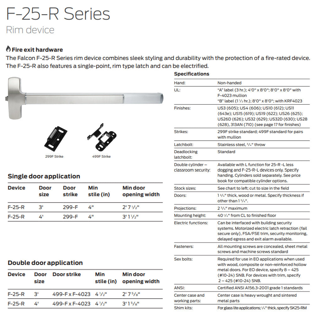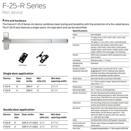 Falcon F-25-R-EO Series Exit Only - Rim Exit Device Fire Rated