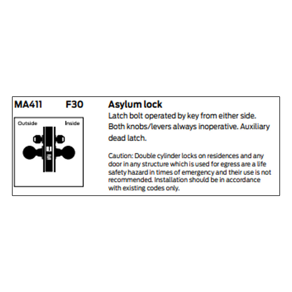 Falcon MA411 Asylum Lock - Grade 1 Double Cylinder Mortise Lock