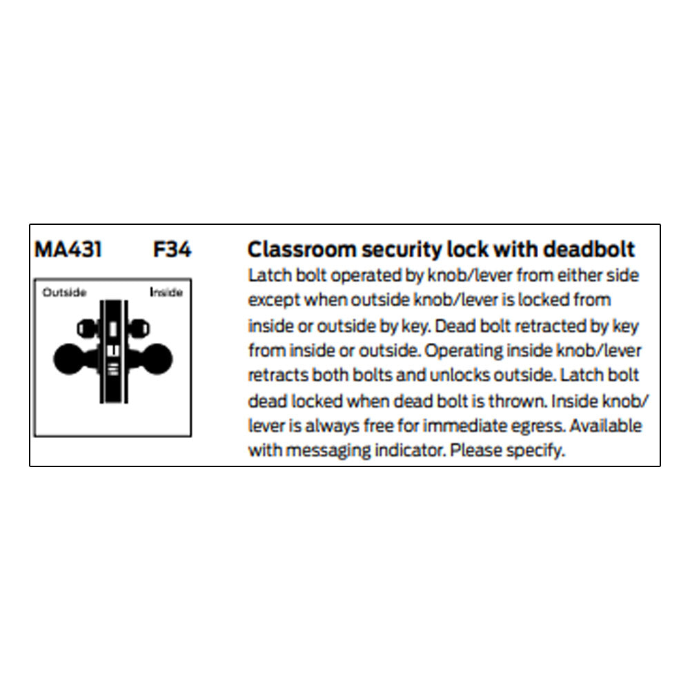 Falcon MA431 Classroom Security - Grade 1 Double Cylinder Mortise Lock with Deadbolt