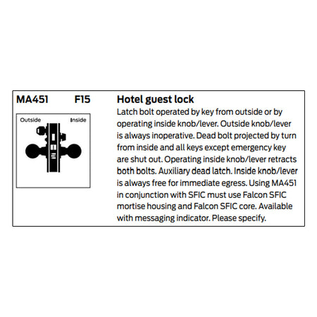Falcon MA451 Hotel Guest Lock - Grade 1 Keyed Mortise Lock with Deadbolt