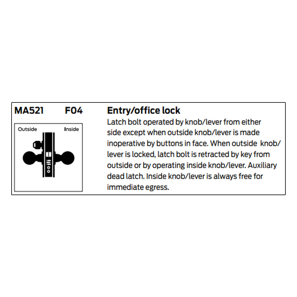 Falcon MA521 Entry/Office Lock - Grade 1 Single Cylinder Mortise Lock