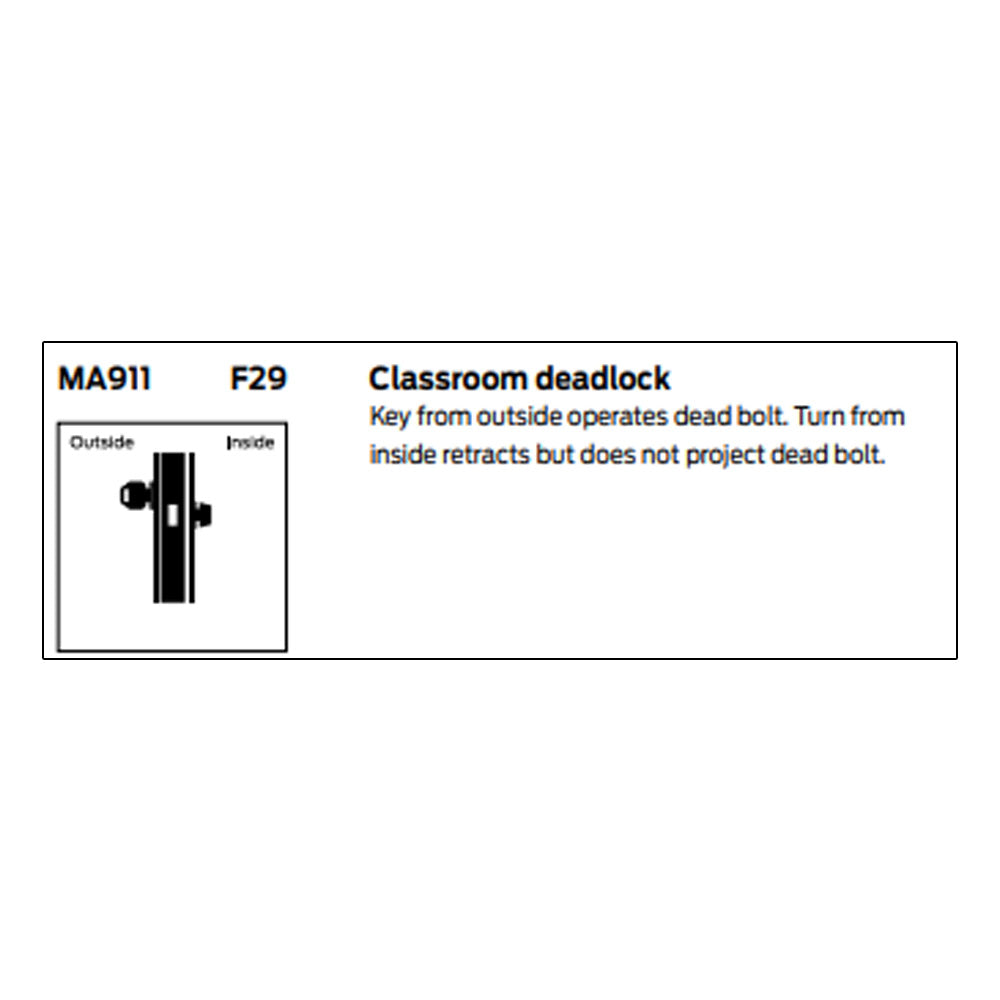 Falcon MA911 Classroom Deadlock - Grade 1 Single Cylinder Mortise Lock