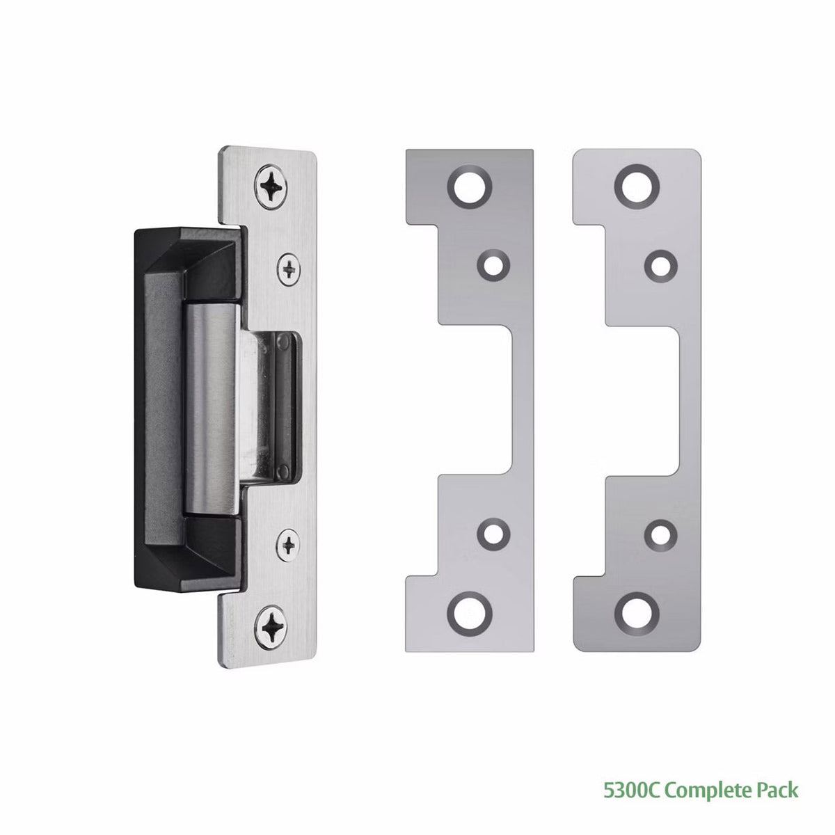 The HES 5300 Series Electric Strike is a fire-rated compact, high performance electric strike designed for low profile openings where there is limited space behind the jamb. Its strength is derived from a unique keeper pin locking design, enabling the 5300 to exceed the ratings of the frame, door and locking hardware. This field selectable fail safe/fail secure unit is easy to install and accommodates latchbolts up to 5/8" throw.