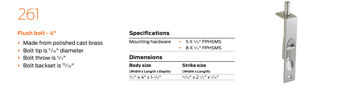 - An exceptionally smooth working flush bolt with sharp, crisp lines;