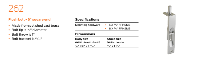 - An exceptionally smooth working flush bolt with sharp, crisp lines;