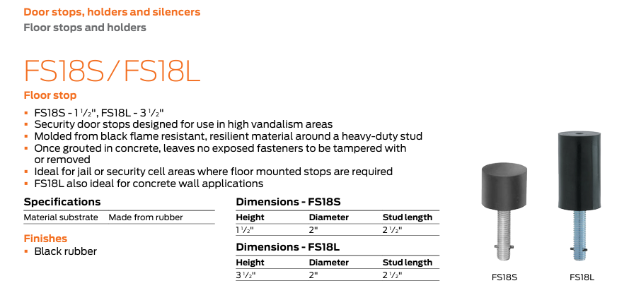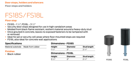 FS18S FLOOR STOP - 1-1/2"FS18L FLOOR STOP - 3-1/2"