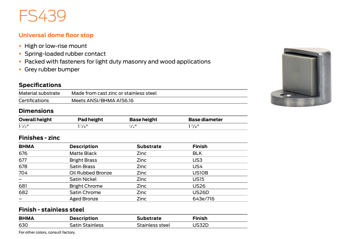 With a full line of wall bumpers, wall holders, kick down holders and hinge pin stops, Ives products are designed to ensure that doors will not slam into the wall. These accessories are typically found on doors without an overhead stop or holder.