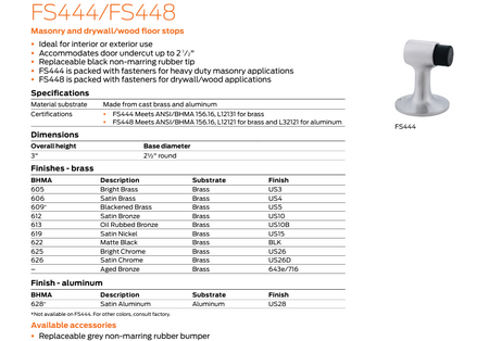 - FS448 Meets ANSI/BHMA 156.16, L12121 for brass and L32121 for aluminum