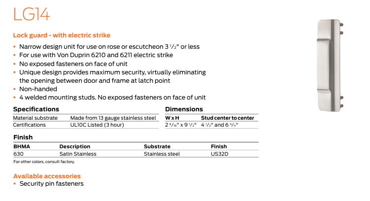 LG14 LOCK GUARD - WITH ELECTRIC STRIKE