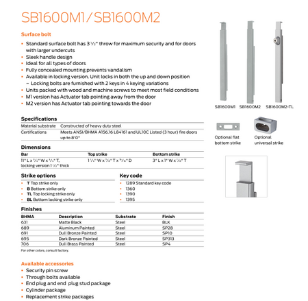 SB1600M1/SB1600M2 SURFACE BOLTS