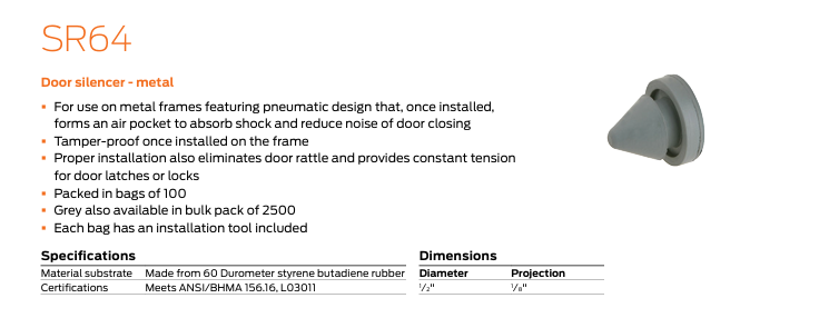 Ives - SR64 Rubber Door Silencer for Metal Frames - Bag of 100 Gray Finish