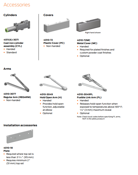 • UL and cUL listed for self-closing doors with regular or fusible link arms for self-closing doors