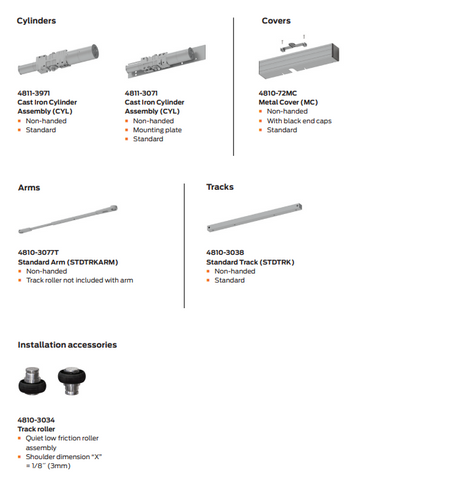 - The 4840 Series mounts surface on door with parallel arm (push side).