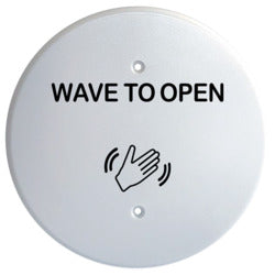 Standard Duty Touchless Actuator, Round, Text & Wave Icon, Black or White