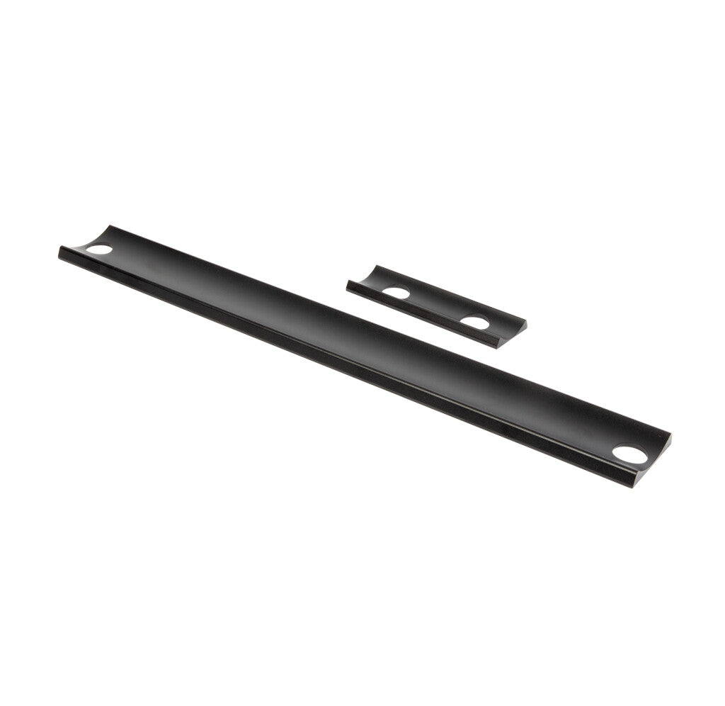 Black anodized aluminum adaptor plate for square to round frames for Lion gate closer. The plate is mounted between gate closer and the round frame.