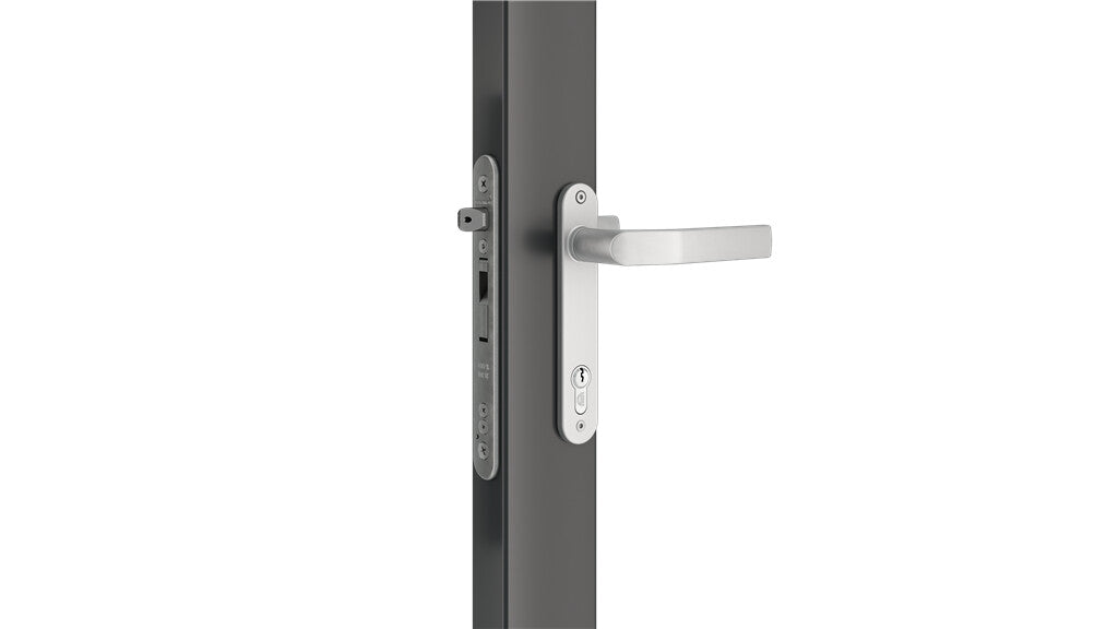 - Backset 2-3/8", for mounting in profiles of 3-1/8" of depth or more