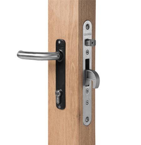 Mortise lock with 100% stainless steel mechanism. This model is specially designed for wood gates. The adjustable latch bolt in combination with the stainless steel hook (dead bolt) provides extra security. The combination of the hook (dead bolt) with the SHKW keep provides a secure anchoring of your gate while preventing the gate from being pried open as the dead bolt's "hook" locks into the keep's anchoring plate. The latch gap required is keep dependent, but the SHKW Hybrid keep requires a 7/8" latch gap.