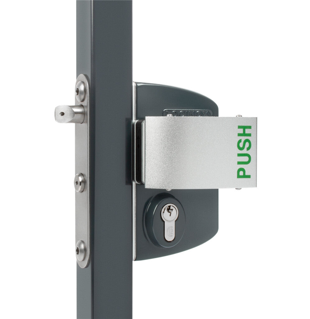 Locinox LPKQU2 - Surface mounted anti-panic gate lock with Aluminum half handle & Cylinder: VSZ - Keyed to differ