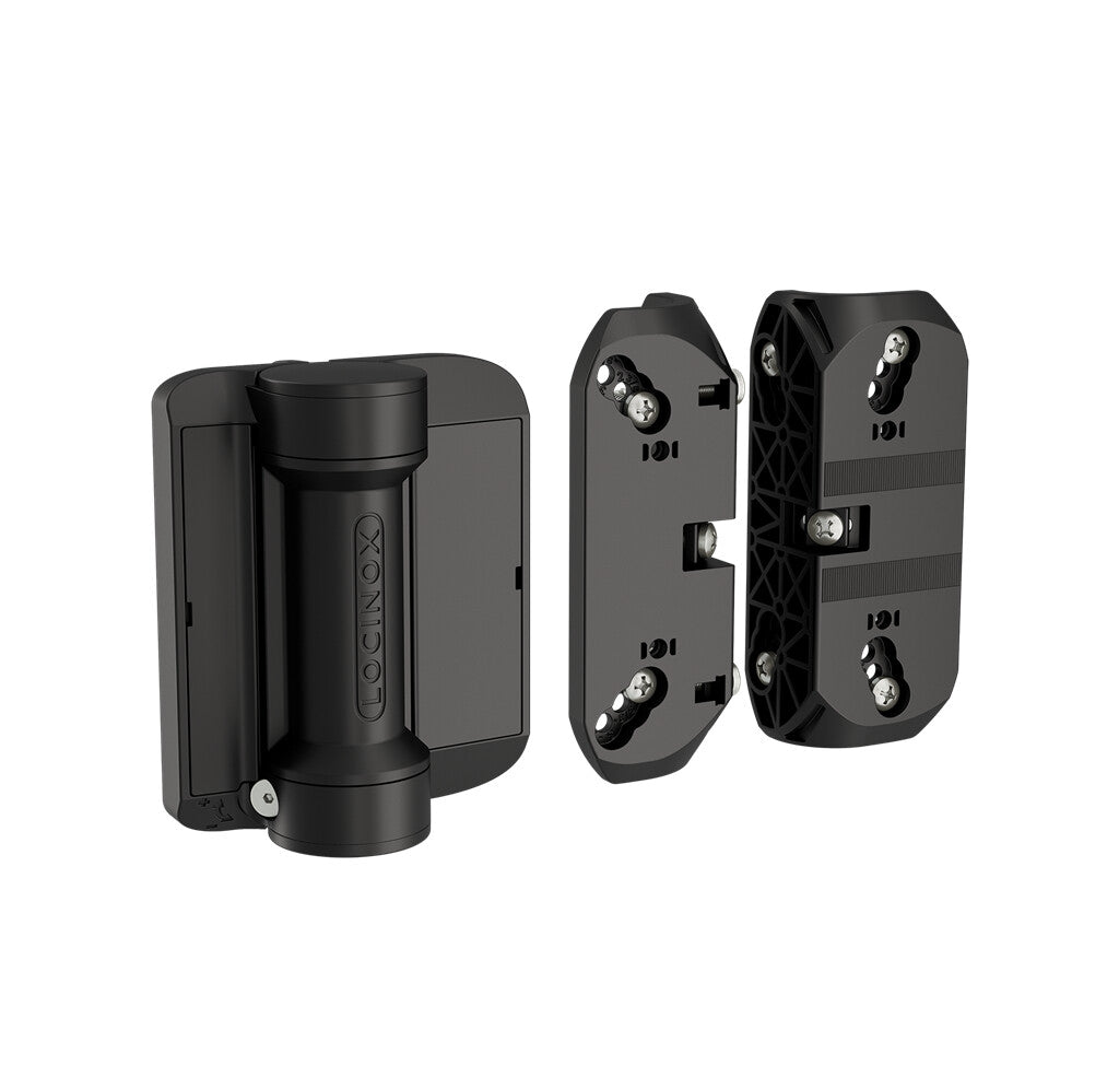 The Serval is a compact spring hinge with force adjustability. The fiberglass reinforced polyamide housing protects the high-tech internal components, allowing for perfect functionality in all weather conditions. Its 13/16" vertical and horizontal adjustability ensures an easy and flexible installation. Firmly fixed with self drilling screws - no welding required. Suitable for installation on square and round frames.